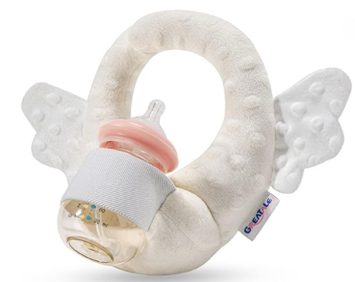 This recall involves Greatale self-feeding pillows. The recalled self-feeding pillows are made of stuffed fabric and have an elastic sleeve to hold a bottle in front of an infant's face. They were sold in white with angel wing shaped decorations. "Greatale" is on a label sewn into the seam of the pillow.